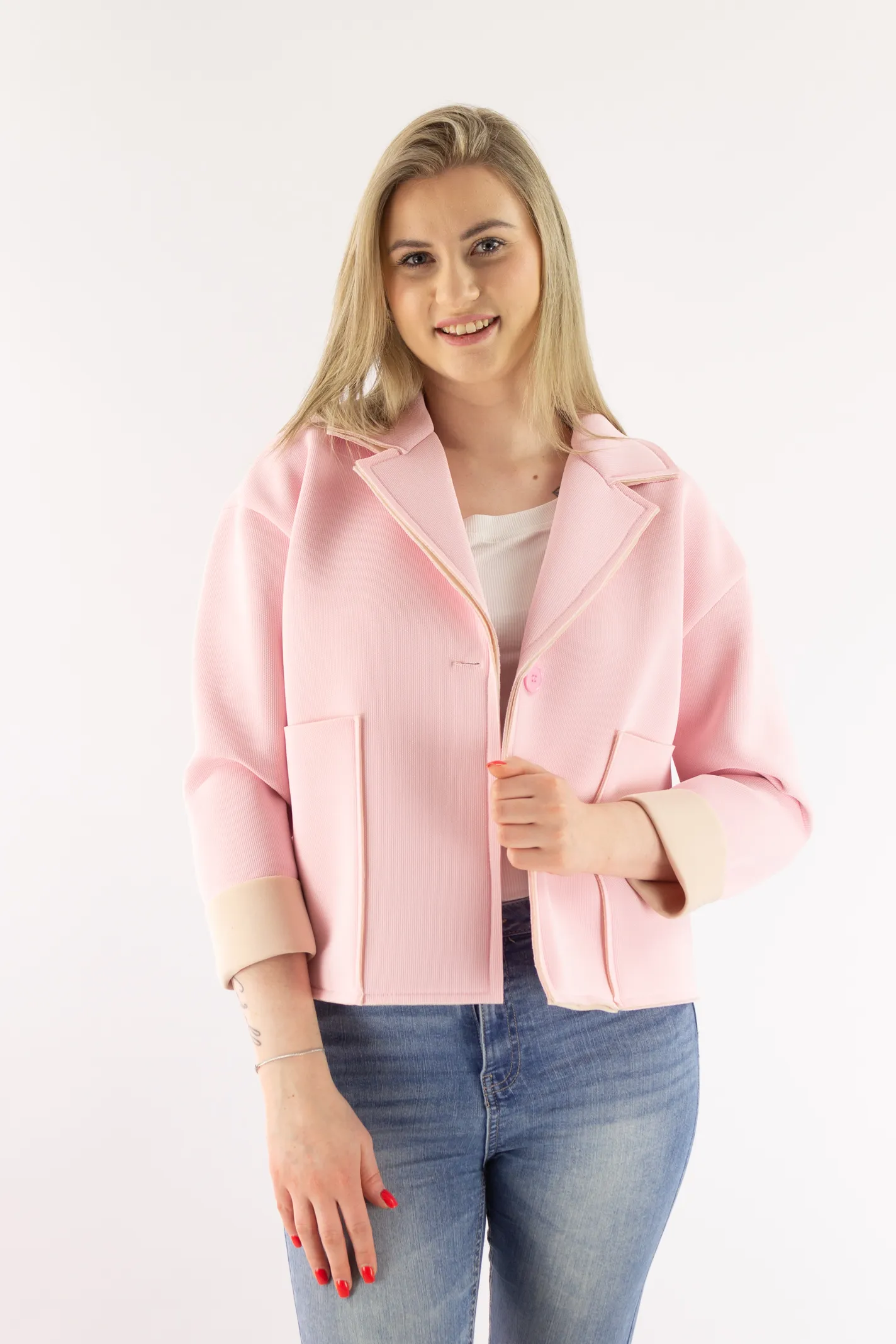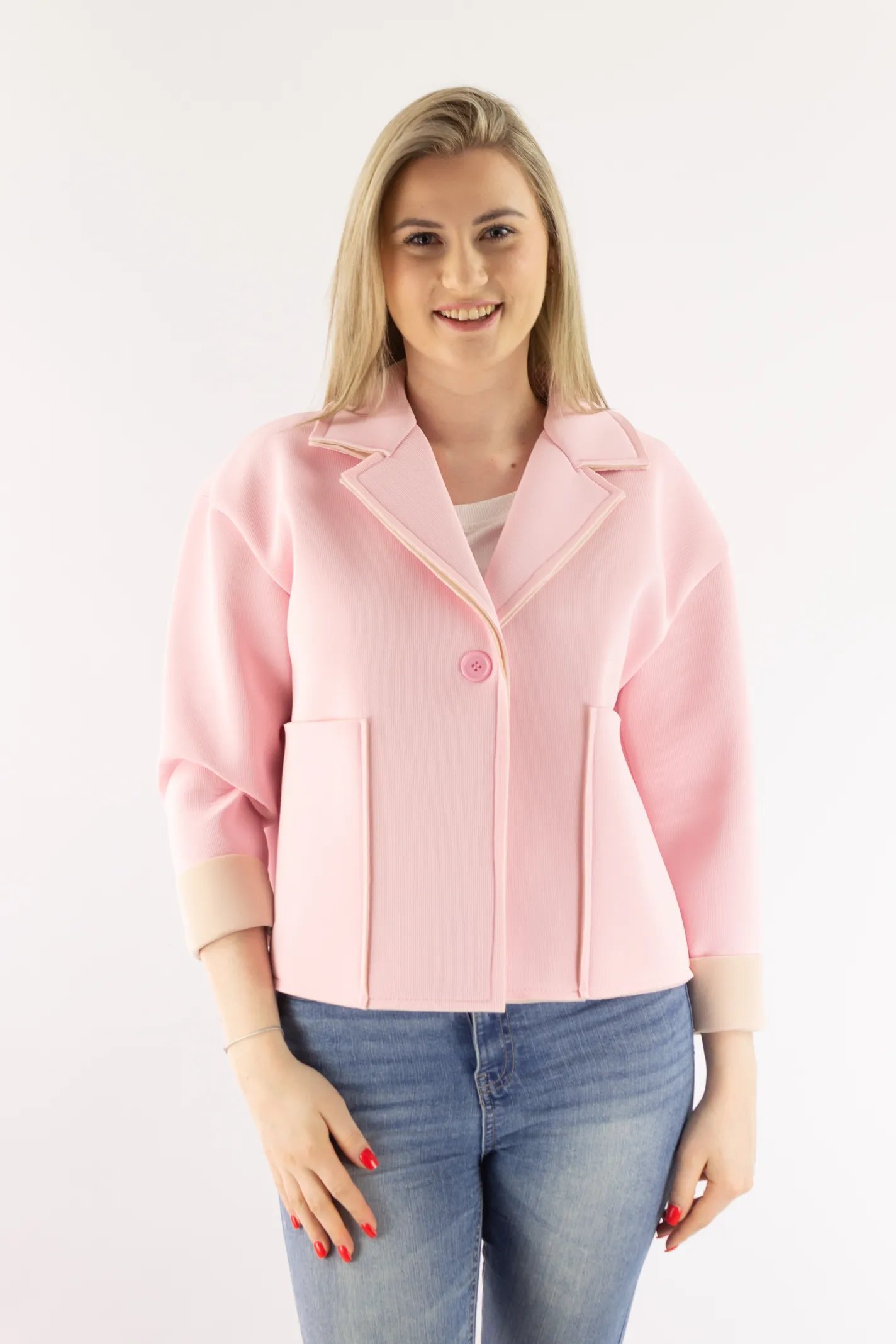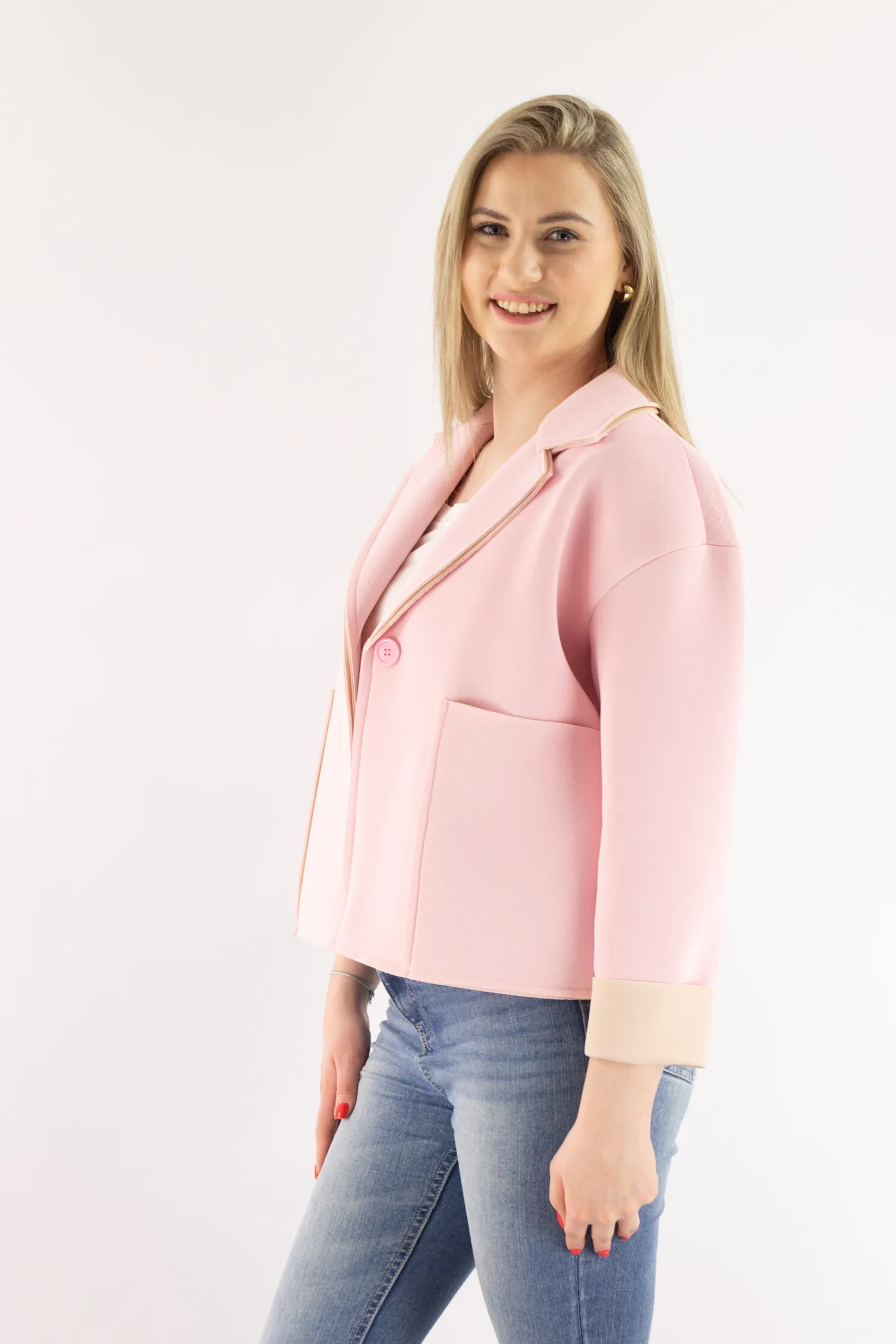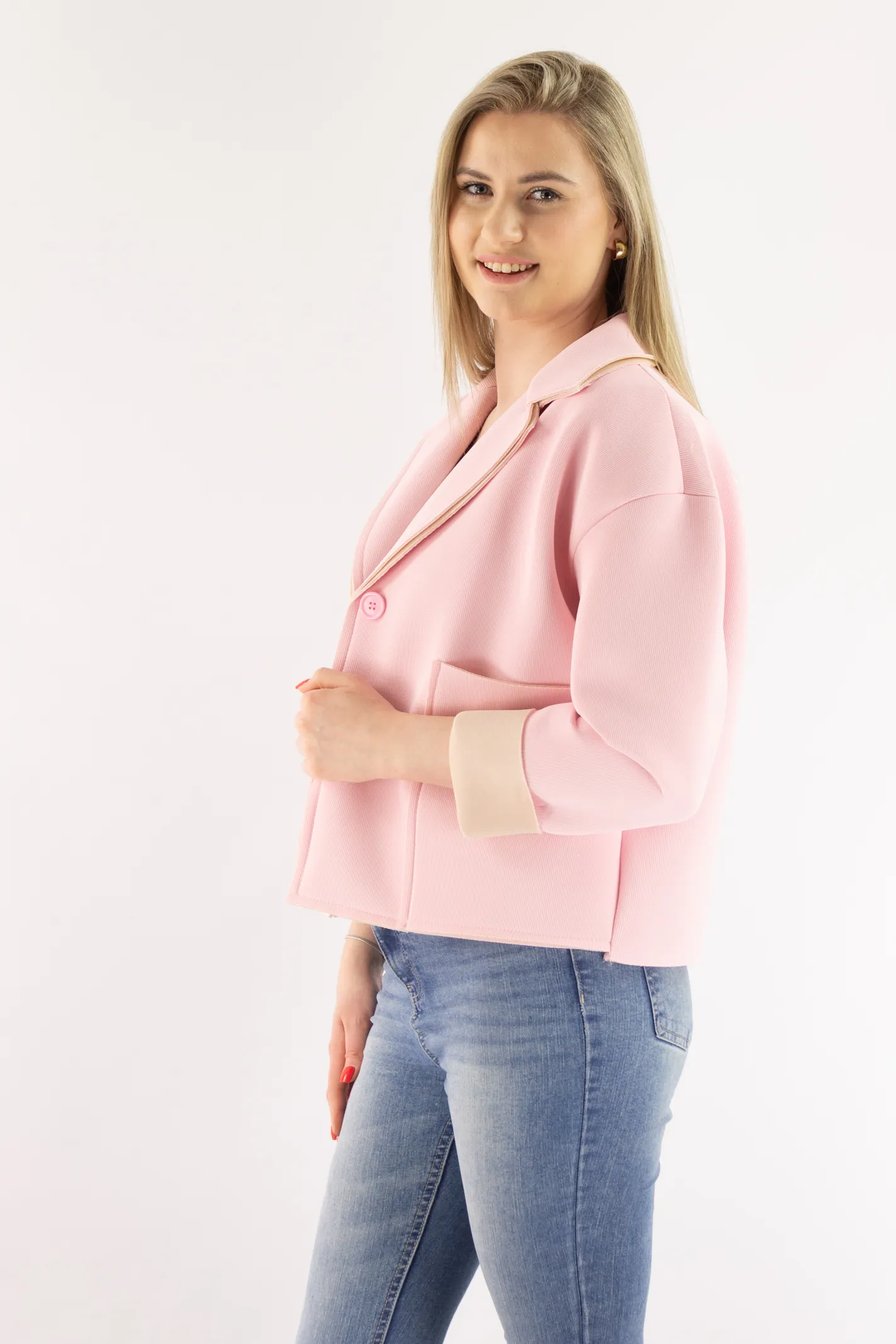 Strona główna / Nowości / Krótka kurtka z dużymi kieszeniami pudrowy róż