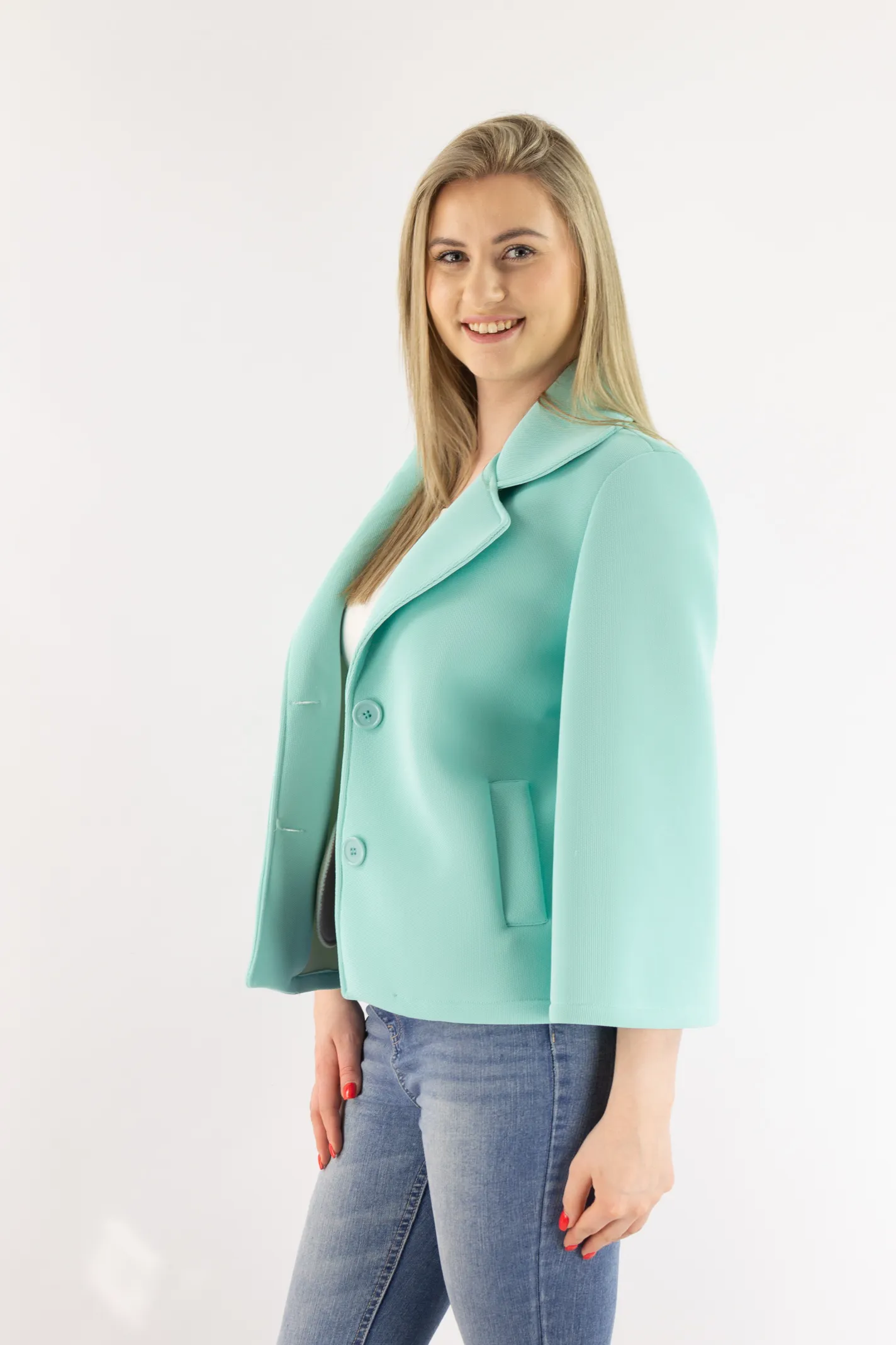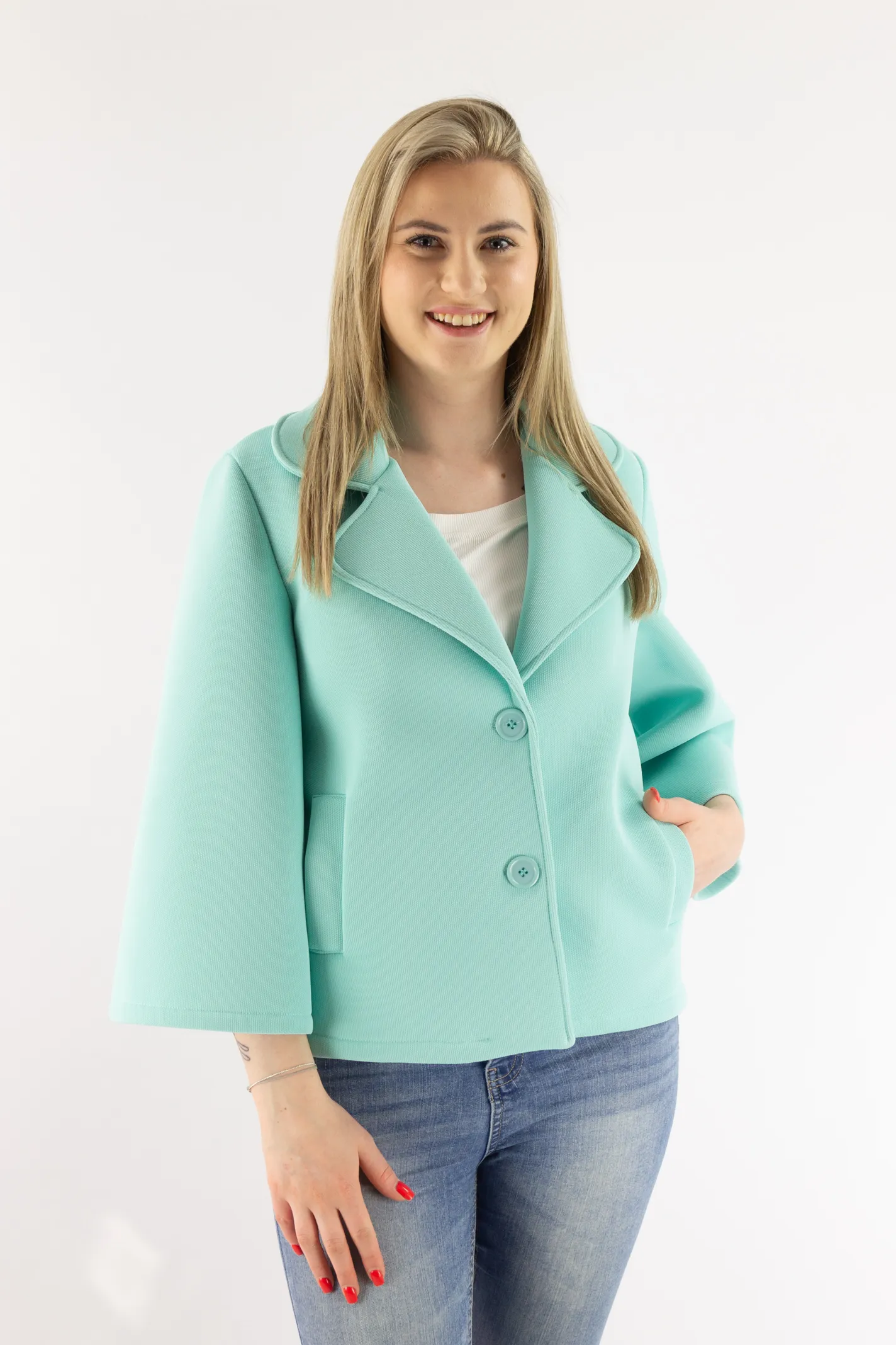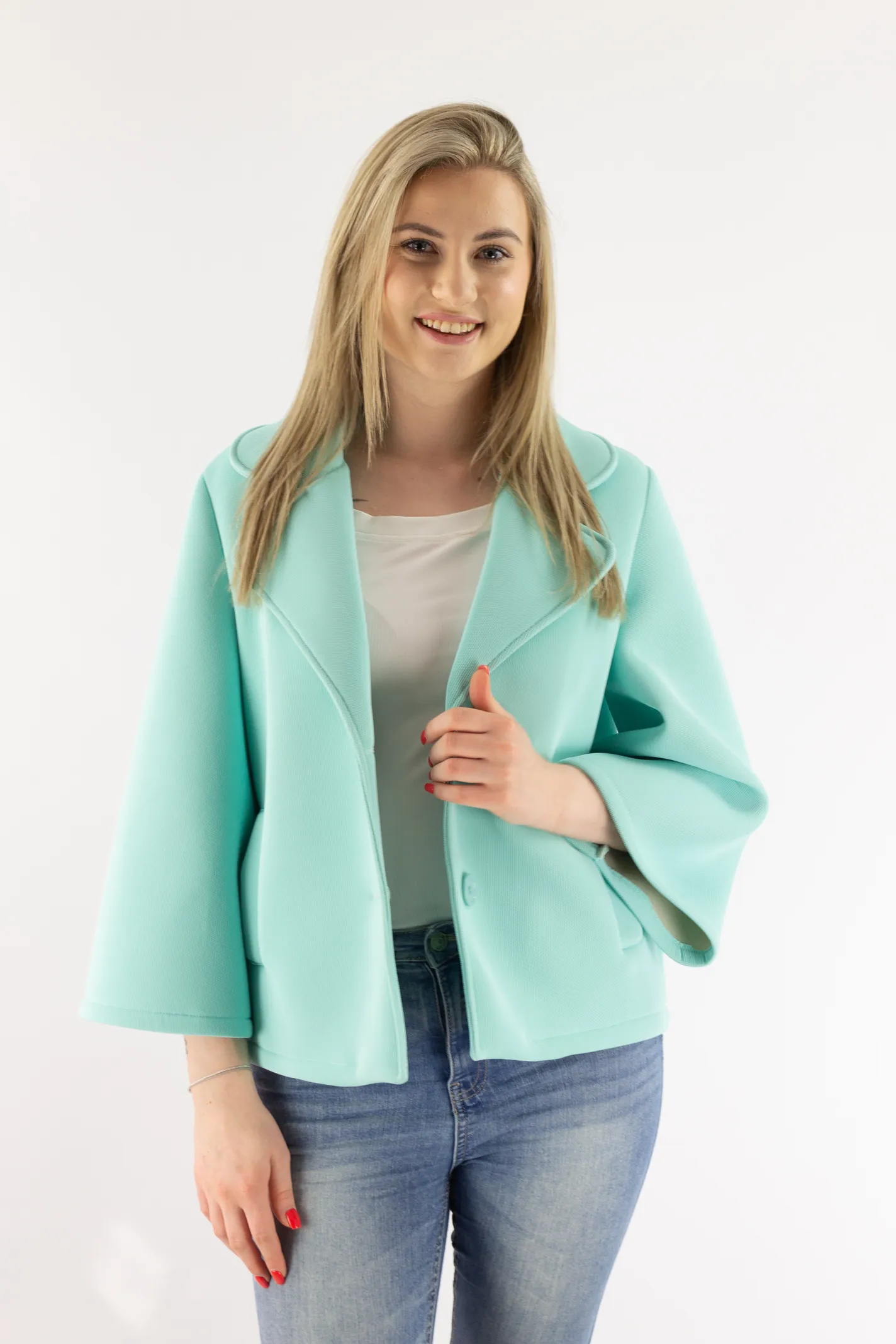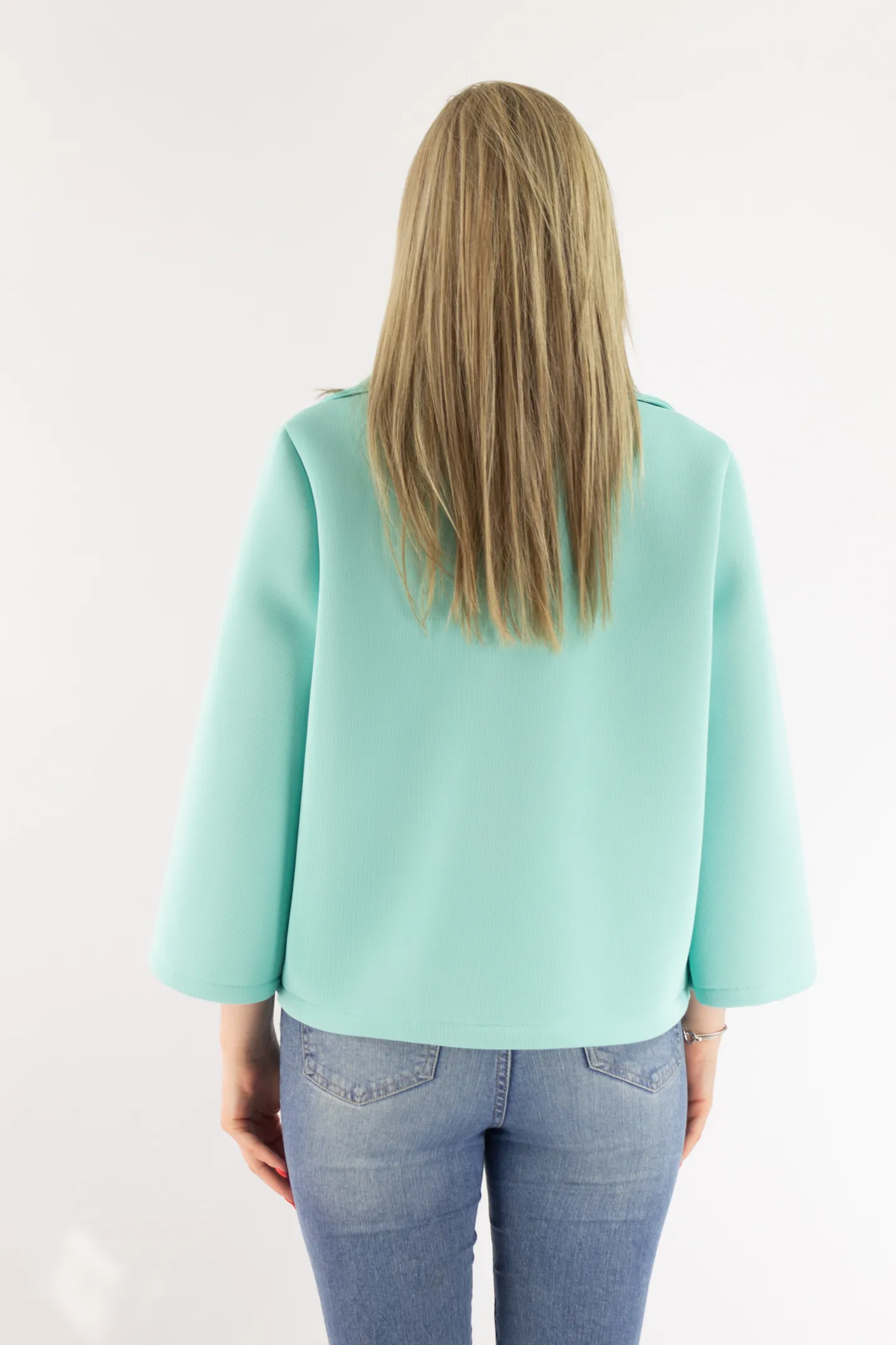 Krótki płaszczyk z szerokim rękawem miętowy